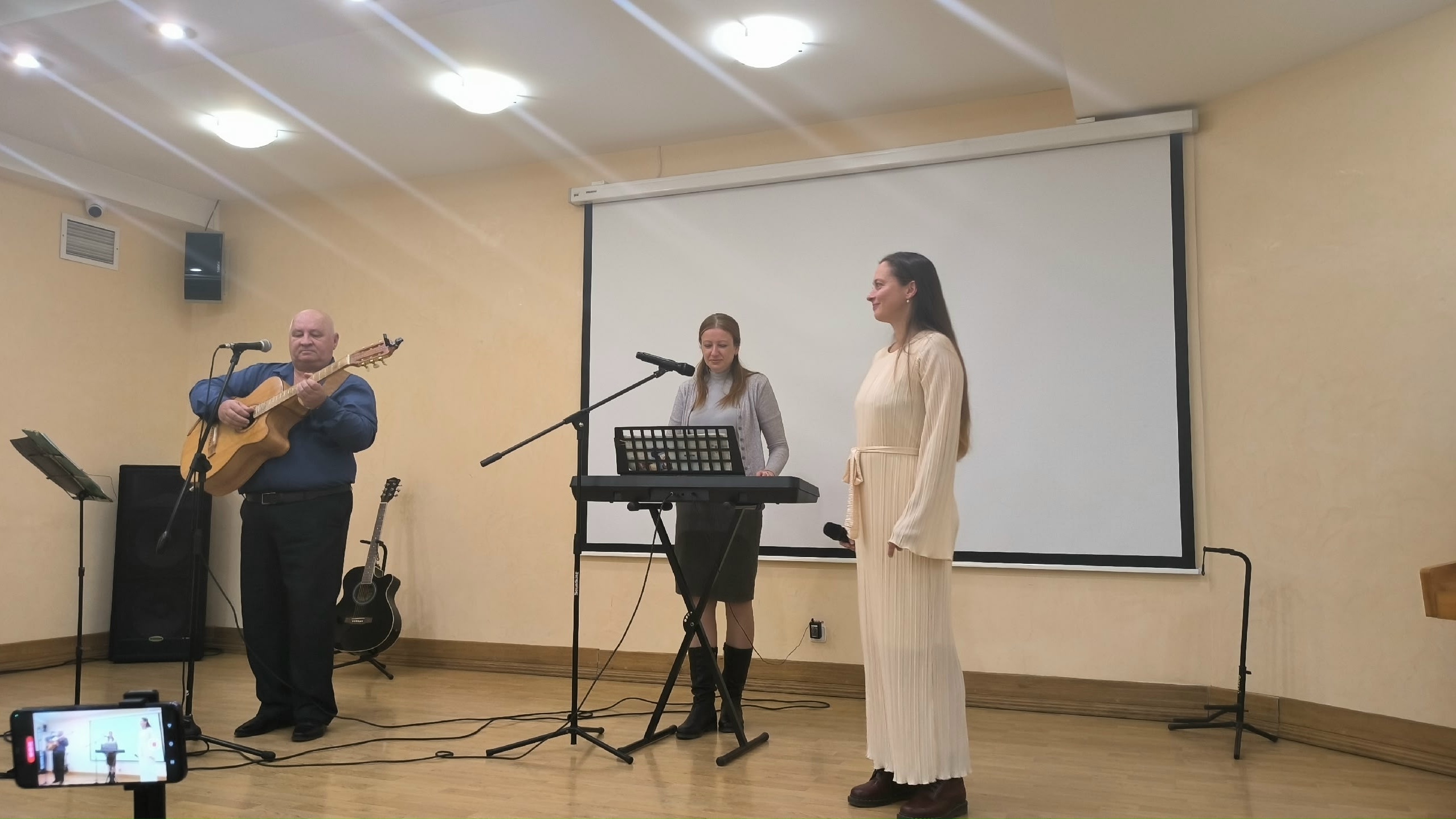 Перед читателями и гостями библиотеки выступили крымские писатели, поэты и барды, в исполнении которых прозвучали праздничные музыкально-поэтические композиции, посвященные крымской зиме и любимым новогодним праздникам.
